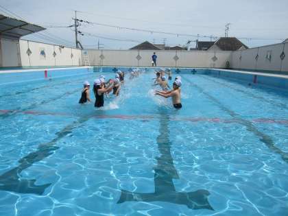 体育の学習では,みんなが楽しみにしていたプールでの水遊びが始まりました。