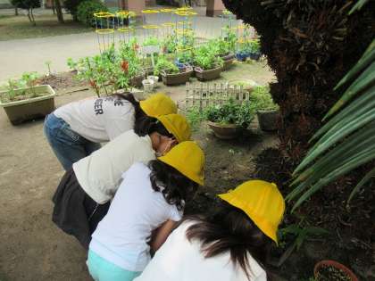 身の回りにいる虫たちを連れてきて,何を食べるんだろう?どんなお家にすれば住みやすいかな?など,虫たちの気持ちを考えることで命の大切さを学びます。