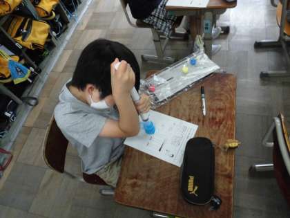 理科の学習で「とじこめた空気」の実験を行いました。
