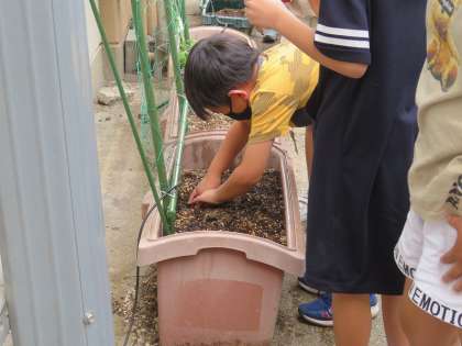 「みんな同じプランターで育てるから,水やりが大切だね。」