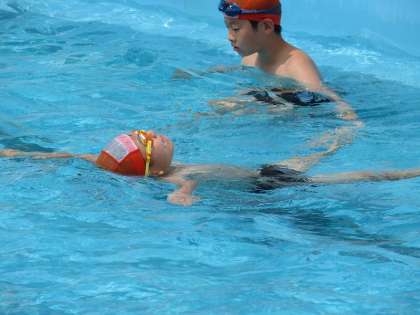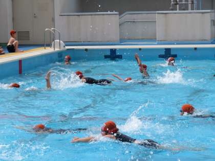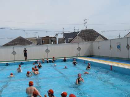 歩く→顔つけ・息を吐く練習→泳ぐ練習でプールサイドに上がるを