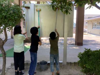 6年生が、「掲示板の裏をきれいにしたい」と話してくれました。そのことを伝えると、「いっしょにする」と6年生3人でそうじをすることになりました。よごれが取れて「気持ちいい」と言いながら、全面のよごれが取り切りました。とっても素敵な行動でした。6年生、ありがとう。