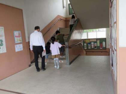 避難の時は、6年生が1年生と手をつなぎ