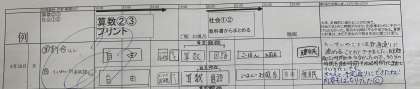 家庭学習の内容を計画し、結果を書き込んでいます。