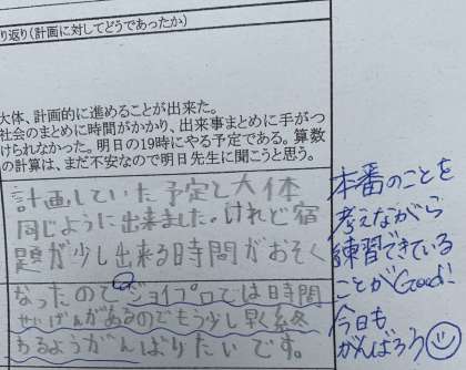 1日の計画を見直して、明日へつなげるふり返りができています!
