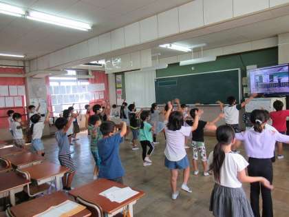 子どもたちは、授業だけでなく、休み時間も楽しみながら練習に励んでいます。