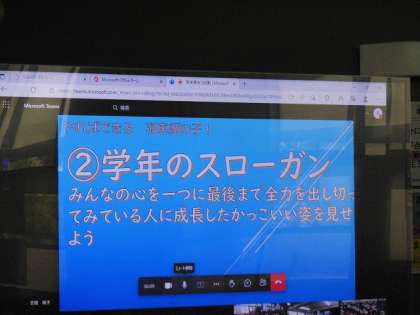 オンライン上での学年集会ですが,みんなで交流してとても良い学年めあてが決まりました。