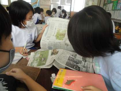 新聞を見て,気づいたことをたくさん出し合い,学習計画を立てていました。