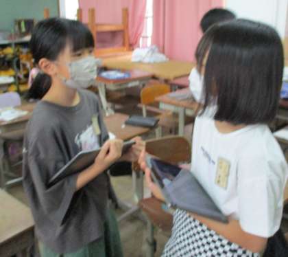 と尋ねたり答えたりして楽しく伝え合っていました。