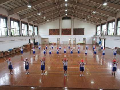 教室と違って体育館は広いので、手を大きく伸ばし、思い切って動くことができます。