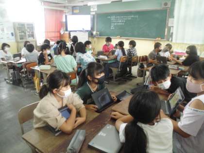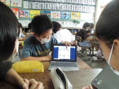 水産業の学習で,沖合漁業や養殖漁業の良さや特徴について話し合っていました。調べ学習の時には,疑問にもったことを教科書やインターネットを使って解決していました。