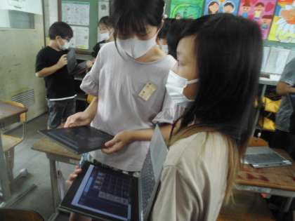 友達がどのくらいの頻度でお手伝いをしているのかをタブレットを用いて交流していました。手伝いの内容によっては,毎日やっているものやたまにしかやっていないものがあることに気づいていました。