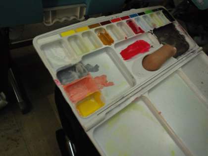 絵の具を混ぜながら表現したい色を作り,