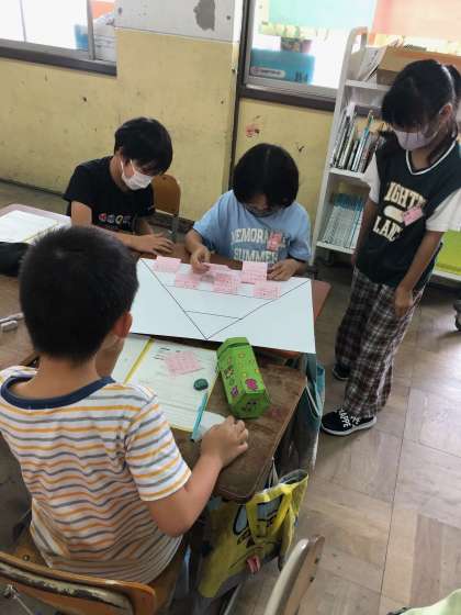 羽束師のことを地域の人や校長先生から話を聞くことができ、たくさん集まった情報をピラミッドチャートにまとめていきました。