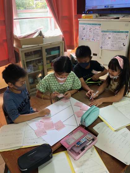 「みんなが宝物のように大切にしている町」「昔から地域の人が力を合わせている町」「神様が守ってくれている町」などと羽束師の町について自分たちなりの考えを出すことができていました。素敵な時間になりました。