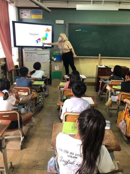 夏休み明け始めの外国語活動はカレン先生が来てくださりました。