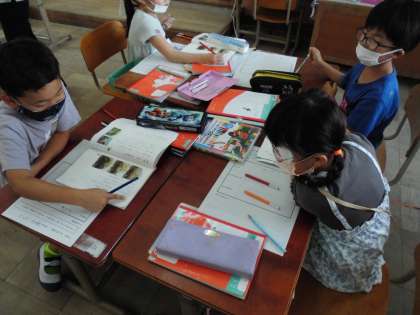教科書をしっかり読んで,もくずしょいの隠れ方を班で協力して探しました。