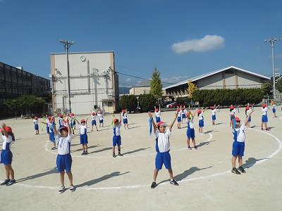 体育授業参観にむけて、運動場でダンスの練習をしました。今日は、初