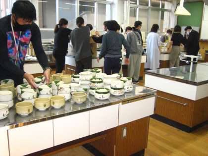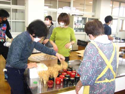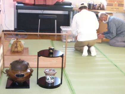 昨年度に続き、羽束師地域の方々が、茶道教室に向けて準備に来てくださいました。