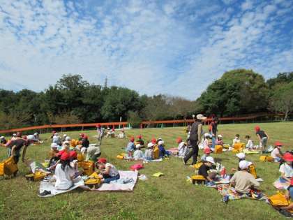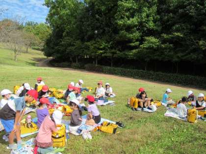 みんな満面の笑顔でお家の方が作ってくれたお弁当をおいしそうに食べています。