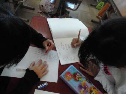 ら唱えたり、紙に書いて覚えたりとみんながんばっています。学校でも