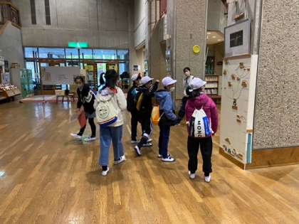 1・2組は本館にて「館内ラリー」をしています。地図を見ながら、館内にあちらこちらに散らばっている星座マークなどを探しています。