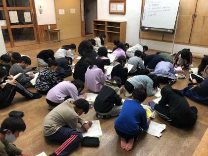 本館に戻り、クラスごとに1日目の振り返りをしました。この振り返りを活かして、明日の活動につなげてほしいと思います。