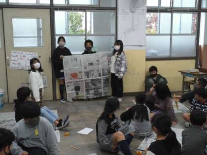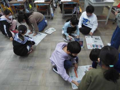 できた1平方メートルの新聞紙を見たり,乗ったりする中で,