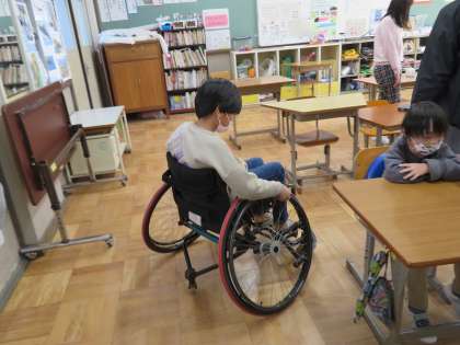 初めは、教室や長い直線を自分で操作する体験をしました。