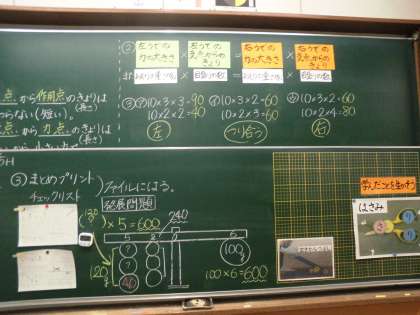 重りの数が違っても、支点までの距離を変えるとつりあうことがわかりました。