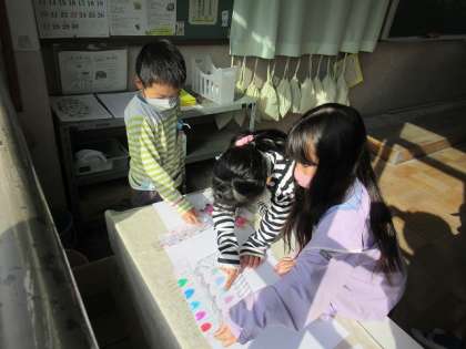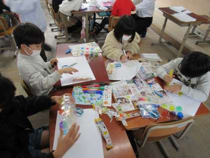 図画工作では「ひかりのプレゼント」の制作をしました。