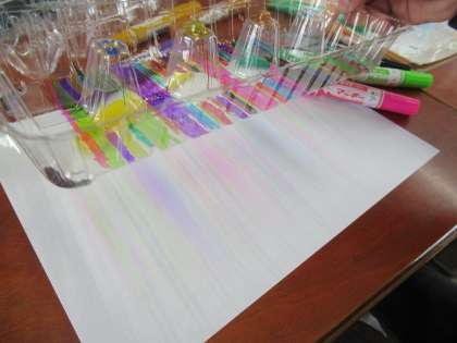 透明のプラスチック容器にマジックで色を塗り、