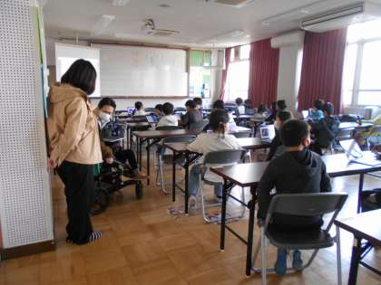 11月22日に呉竹総合支援学校の3年生と3年4組との交流会がありました。今年度2回目の交流です。今回は、自己紹介クイズをしました。好きなものなどをクイズにして、3つの選択肢から答えを選んでもらいます。自分のことを知ってもらうために、GIGA端末を使って準備を進めてきました。クイズで楽しく紹介できました。