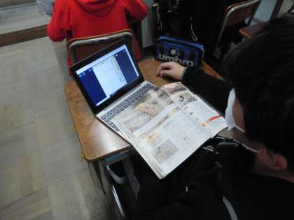 学習した町人の文化と学問の単元についてのまとめ新聞を作成しています。