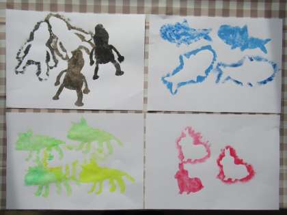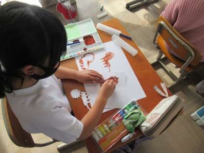 図画工作では、昨年末に引き続き、「たのしくうつして」の作品を制作しています。