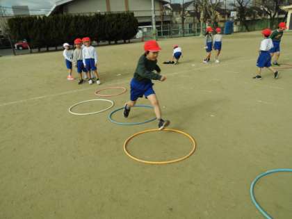 島とびをすると,「最後まで落ちずに飛び越えられた!」「遠いかなと思ったけど飛び移れたよ!」と楽しそうに運動しました!