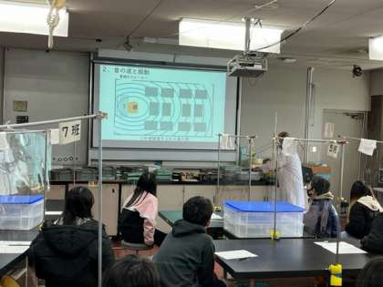 物理コース「なみなみならぬ波の科学」では、音波や電磁波などいろいろな「波」について学習しています。身近にあるけど、あまり知られていない「波」に秘められた科学について学んでいます。