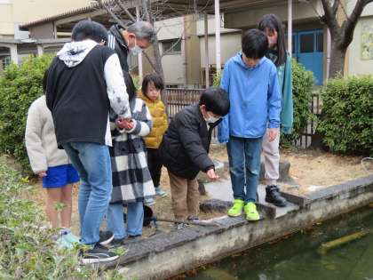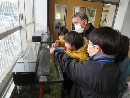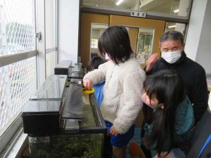 6年生が1年生や3年生にえさのあげ方を教えてくれました。