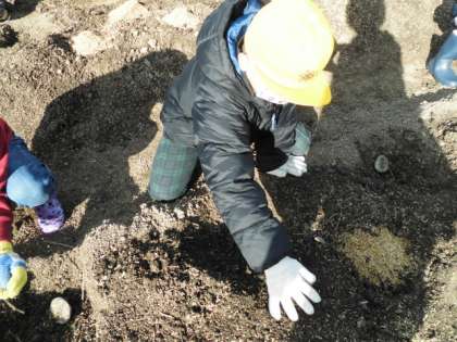 寒い冬を土の中で過ごすことができるように、しっかり植えることができました。