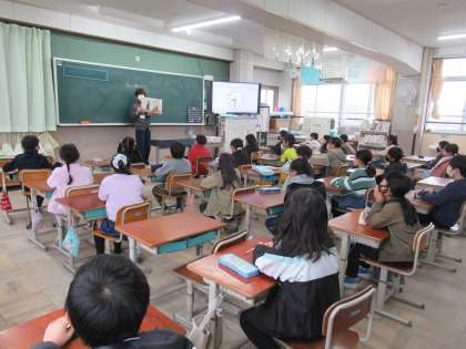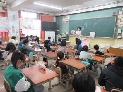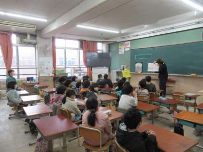 今日は朝の帯時間に、図書ボランティアさんによる読み聞かせがありました。