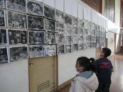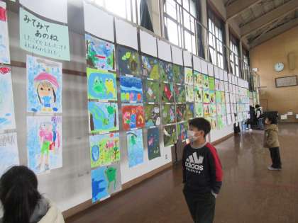 2年生の子たちにとっては初めての経験で、全校児童の作品が一堂に会している様子を見て