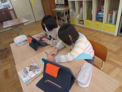 高学年は、Ipadで文字を打ち、写真を選びました。
