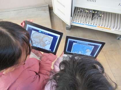 GIGA端末を使って、動物のイラストに好きな色を塗っていきます。