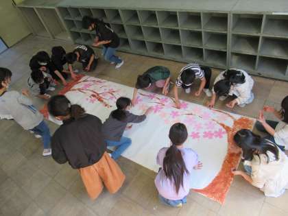 6年生の卒業と、新1年生の入学をお祝いするための壁画を鋭意制作中です!