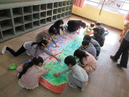 2年 おめでとうの壁画、制作中!