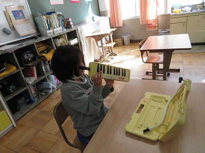 鉄琴と鍵盤ハーモニカに分かれて練習し