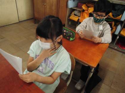 「算数の時、教えてくれてありがとう!」「走るのが速くてすごいね!」など、1年間同じクラスで過ごしてきた友達のことを振り返り、思いを手紙に書きました。