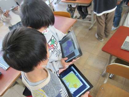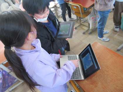 3学期の英語活動。締めくくりは、ロイロノートで色を塗って作った絵本を