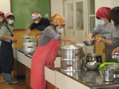 初めて赤飯を食べた子どももいましたが,ほかほかできたての赤飯に