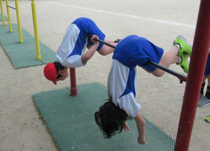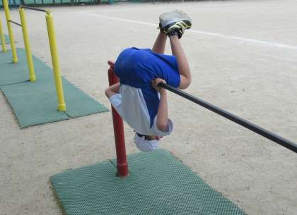 ぶら下がったり回ったりしてできる技を増やしていきます。